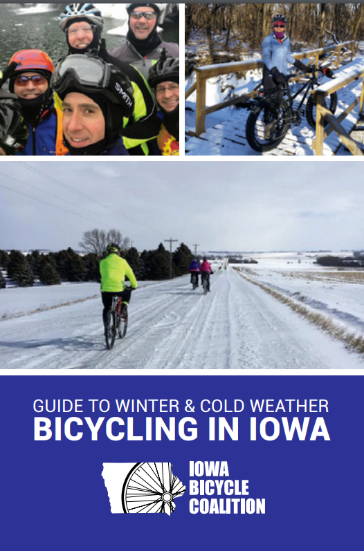 ![]() | Download: Winter Bicycling in Iowa Bicycling happens all year long in Iowa. The Winter Bicycling in Iowa Guide is an essential resource for anyone who wants to keep riding their bike throughout the colder months in Iowa. Our guide provides tips for staying warm, dry, and safe while riding in winter weather conditions. We offer advice on choosing the right gear, including clothing, accessories, and equipment, to help cyclists stay comfortable and protected from the elements. With easy-to-understand language and practical advice, our winter bicycling guide is designed to empower cyclists with the knowledge and tools they need to keep riding year-round in Iowa. Whether you’re a commuter, recreational cyclist, or serious athlete, our winter bicycling guide is a valuable resource for staying active and safe during the colder months. |