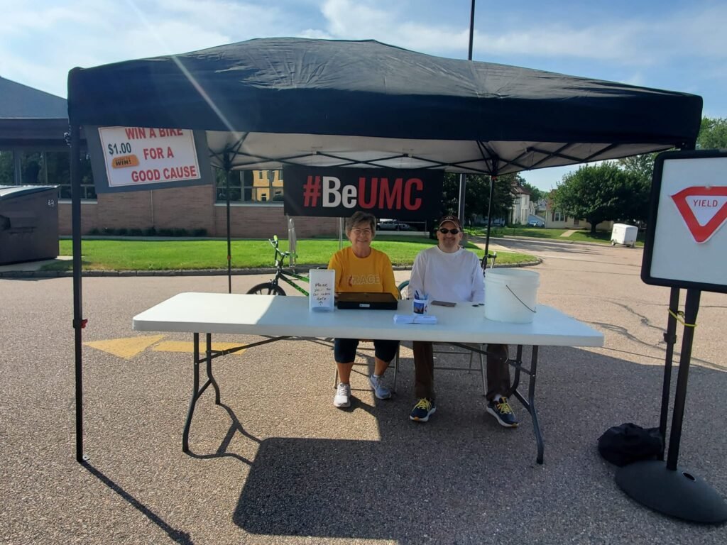 She didn’t have to go it alone, 19 volunteers stepped up and helped promote safe cycling in their community. Members of Grace UMC congregation and community members helped man the stations. Two officers from the Sioux City Police Department were there helping kids learn how to navigate the road and passing out tickets for safety (redeemable for ice cream!). Siouxland Cyclists members were on site to share their venerable knowledge of cycling. And Siouxland Bike for Kids donated two bicycles to give away for the young participants.